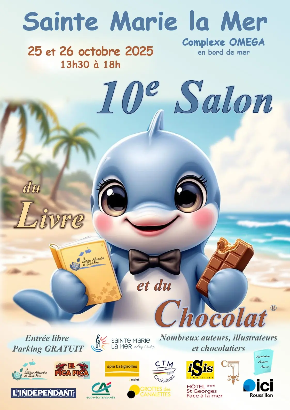 le Salon du Livre et du Chocolat revient pour sa 10e édition, les samedi 25 et dimanche 26 octobre 2025, de 13h30 à 18h, au Complexe Oméga, situé au bord de la mer à Sainte-Marie-la-Mer.